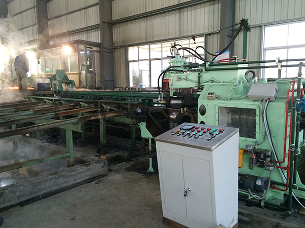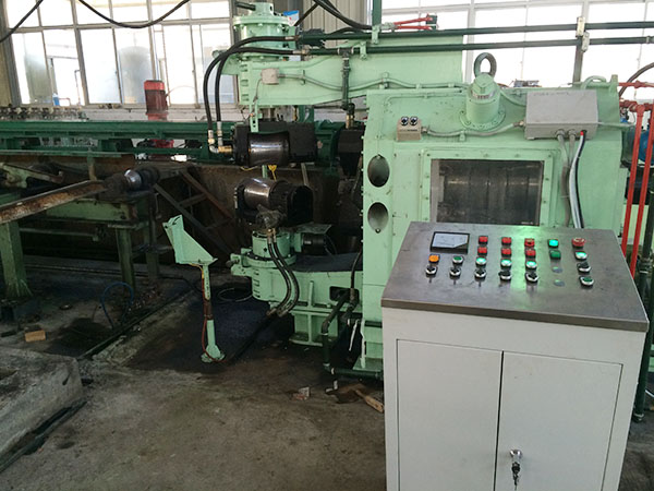 打頭能力: 設備******捶打能力為100T(980KN)。可在鋼管熱和冷兩種狀態(tài)下進行打頭,熱打是指將鋼管加熱到650℃~800℃左右的狀態(tài)下進行打頭,或利用穿孔完成后鋼管余熱進行在線打頭。冷打指在鋼管壁厚4mm以下進行常溫下打頭。打頭尺寸根據(jù)更換模具來調(diào)整,每副模具打出的頭子尺寸為固定尺寸。捶打能力可根據(jù)公式進行計算得出,熱打前的鋼管直徑為φ40—φ114mm。