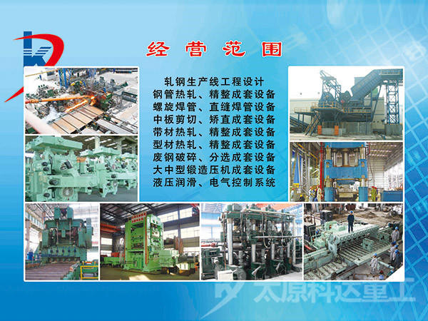 自公司成立以來(lái)已取得了多項(xiàng)工程設(shè)計(jì)業(yè)績(jī)。河北滄州力通聯(lián)無(wú)縫鋼管有限公司φ219無(wú)縫鋼管工程工廠設(shè)計(jì);力通聯(lián)無(wú)縫鋼管有限公司φ273熱處理線工廠設(shè)計(jì)及設(shè)備設(shè)計(jì)供貨;江蘇常寶普萊森φ140無(wú)縫鋼管工程工廠設(shè)計(jì)及設(shè)備設(shè)計(jì)供貨;江蘇常寶150三輥穿孔機(jī)、12機(jī)架微張力減徑機(jī)、高精度十輥矯直機(jī)、鍋爐管精整區(qū)域自動(dòng)生產(chǎn)線、AVS打頭機(jī)、雙線三線五線系列自動(dòng)冷拔機(jī)等工藝成套設(shè)計(jì)供貨;磐石鋼管有限責(zé)任公司90熱軋生產(chǎn)線工廠設(shè)計(jì)供貨等。